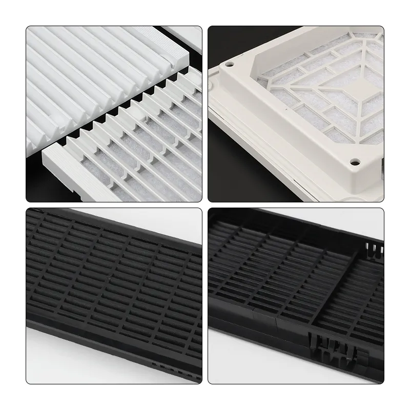 La struttura a rete e lo strato filtrante consentono alle griglie di ventilazione di impedire efficacemente l'ingresso di contaminanti esterni all'interno dell'apparecchiatura, garantendo un funzionamento normale e sicuro. Realizzato in materiale ABS, questo prodotto offre un'eccellente resistenza alla corrosione e resistenza strutturale.